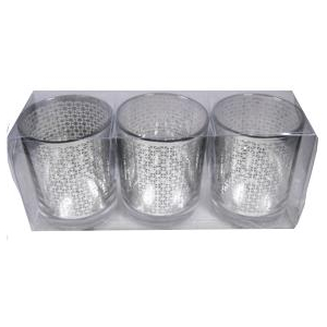 Candle Holdr/Snuffer 3 Piece Votive Holders Glass Silver