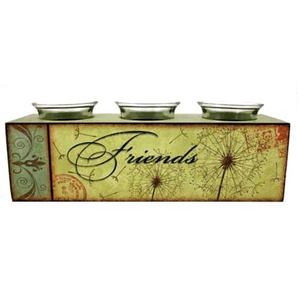Candle Holdr/Snuffer - 4 assorted candle holders in various colours and patterns with the words; family, friends, home and live laugh love