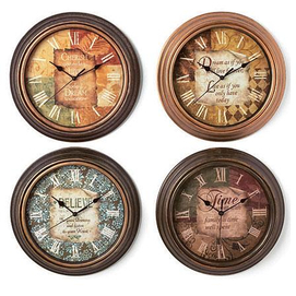 analog plastic frame in an antique-style finish requires 1 ‘AA’ battery* 12" diam.