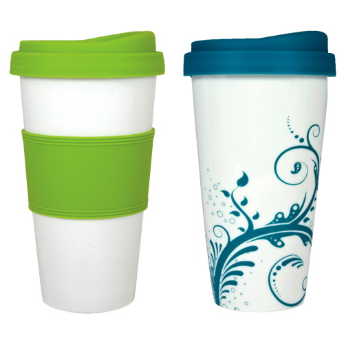 Eco-Highway Ceramic Eco-Tumbler (EC-FSTU-EHM6312LT) - White/Green view