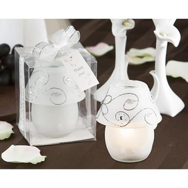Warm, elegant, and dazzling are a few words to describe this Sparkling Tea Light Candle. The lamp base reveals the warm, glowing votive candle while the lamp shade in frosted glass glows softly. The lamp shade is elegantly designed with shimmerin... Read more