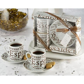 Get some time on the 'Love Espress' with this fantastic set of espresso cups and saucers. Guests will be thrilled to receive this keepsake gift (and may just ask for another!) made of quality ceramic and presented in a fantastic gift box displayin... Read more