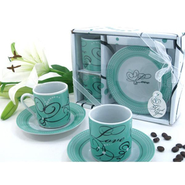 Love is in the air and is presented in high style with this Love themed set of espresso cups. Elegant heart and swirls superbly fashion this espresso set that is just as likely to appear in guests showcase cabinets as it is on their kitchen tabl... Read more