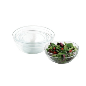 Glass 7 piece glass bowl set Bowls nest for easy storage Dishwasher and microwave safe A perfect assortment of sizes for all your baking, cooking and serving needs