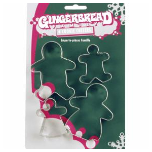 Food Decor/Cutters Cookie Cutter Set Gingerbread family cookie cutters Includes papa, mama, boy and girl Gingerbread cookie recipe on the back 3" tin