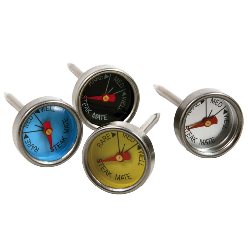 Get perfectly delicious results. This set of four Norpro mini steak thermometers helps you cook your steaks and burgers with ease. They feature easy-to-read dial displays with rare, medium and well done settings. Everybody likes their steak don... Read more
