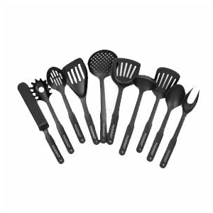Servr/Tong/Skim/Fork 10 Piece Nylon Utensil Set Flexible nylon makes utensils easy to use and easy on your cookware Recommended for all Paderno non-stick and stainless cookware Dimpled thumbrest gives a solid grip Dishwasher safe and hea... Read more