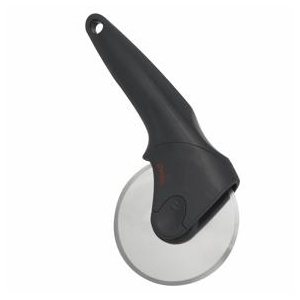 Chipr/Slice/Cut/Peel Pizza Cutter Silicone Stainless steel Blade releases for easy cleaning Bolster protects fingers from blade Large blade for thick doughs Large thumb groove for extra cutting control Dishwasher safe