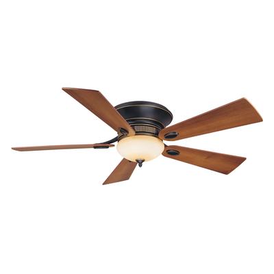 The 52 In. ceiling fan in dark restoration bronze finish uses an integrated light kit with rustic scavo glass. Perfect for large rooms with low ceilings, this flush mount ceiling fan includes 5 dark walnut finish blades. 190W limited included fo... Read more