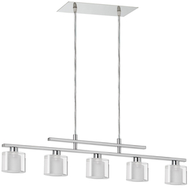 The 5 light lamp is sophisticated and practical. polished chrome finish glass size - 2.5" diam x 3.5" w x 3" h 29.50" Long use 40W G9 bulbs (not included) 4 ft. cords
