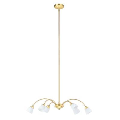The Eglo contemporary suspended fixture, can be applied in the dinning room, kitchen, bar island, office, and living room Suspended Ceiling Light Tarnished Brass Coated finish Opal Frosted Glass 6 x G9 40W Approximately H: 59" max, W... Read more