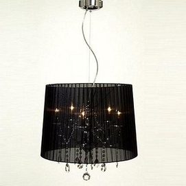 styled in polished chrome with a sheer black 19 3/4'' diam. shade and crystal glass dangling pendants metal takes five 40-watt candelabra-base bulbs (not included) 9' chain while quantities last
