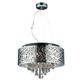 Stylized with metal cut out shade and crystal accent drops. Metal Laser cut shade with crystal accents Chrome Finish 23.5" x 15."5 x 60"