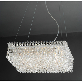 This elegant chandelier with its graceful modern form, features sparkling strands of clear optic crystal-glass filling the interior with translucent coloured crystals around the perimeter. Gen-Lite's beautiful, high quality lighting is sure t... Read more