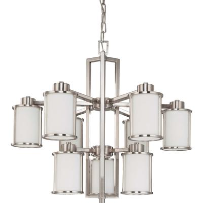Glomar Odeon 6 + 3-Light Chandelierwith Satin White Glass Finished in Brushed Nickel view