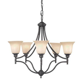 metal with oil-rubbed bronze-tone finish sepia tinted glass shades five 13-watt compact fluorescent bulbs included 25 9/10'' diam. x 24 2/5'' h. 3' chain