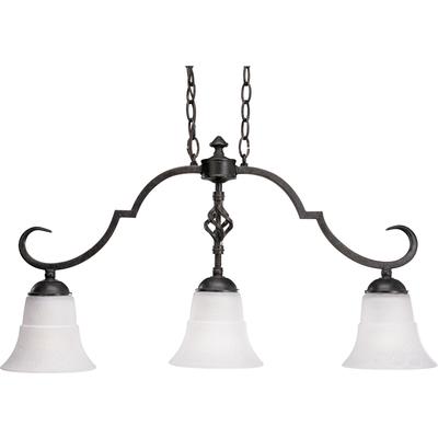 Strong and distinctively formed, the Melbourne Collection features a classic forged iron frame with traditional birdcage twist. Etched watermark glass shades are lightly textured to cast a soft, diffused light. Catalog No. P4267-84 Espresso finish... Read more