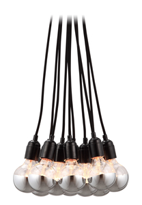 As they say, "less is more". The Bosonic ceiling lamp has 10 chrome-dipped 25w bulbs hung by black braided cord. In essence: just a socket, bulb and cord. UL approved.