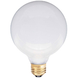 Light bulb, white, medium base, Type G30, 60 W, 130 V. For vanity.