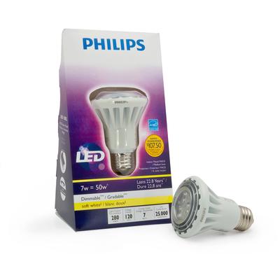 Philips LED Indoor Flood. Energy savings and long life. Dimmable soft white light. Instant-on light. Mercury and RoHS compliant construction. Similar size and shape as regular bulb. Will not fade fabrics or furnishings. Ideal for recessed and trac... Read more