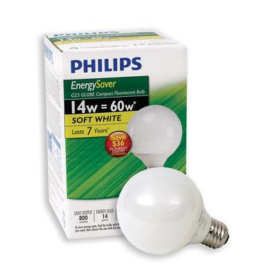 Philips Energy Saver 14 Watt Vanity Globe Soft White G25 view
