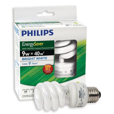 Philips Mini Twister Bright White Compact Fluorescent Bulb - 9 Watt, 2 Pack view