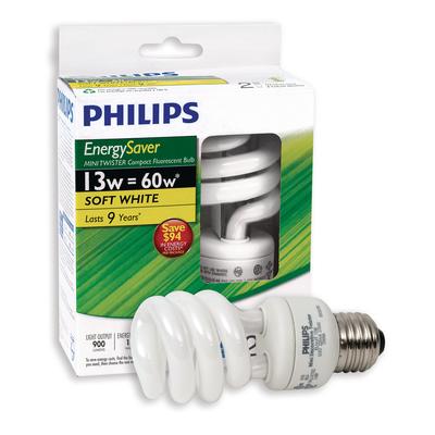 Philips Mini Twister Soft White Compact Fluorescent Bulb - 13 Watt, 2 Pack view