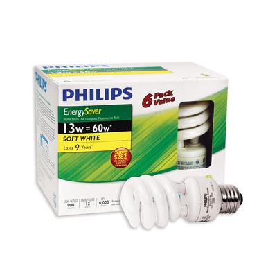 Philips Mini Twister Soft White Compact Fluorescent Bulb - 13 Watt, 6 Pack view