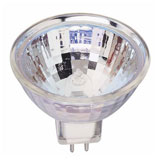 Halogen lightbulb. 12 V. 50 W. MR16 type. GU5.3 bi-pin base. Clear. Sold by the unit.