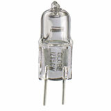 Halogen lightbulb. 12 V. 10 W. T3-JC type. G4 bi-pin base. Clear. 2 per box. Also offered in 20 W.