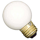Incandescent spherical lightbulb. 120 V. 25 W. G16.5 type. Medium base. Rated average life: 1,500 hours. White. Also offered in 40 W and 60 W.