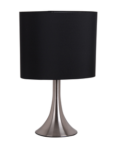 Brushed Steel Finish Assembled height: 13.25" Push On/Off switch Use type A E26 bulb, 40 watt max. or Use CFL bulb E26 equivalent, 11 watt max. (Not included)