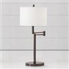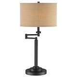 Chocolate brown finish Beige pleated drum shade Dimensions: 26.18" (66.5 cm) tall, 14.76" (37.5 cm) shade, 9" (22.8 cm) swing-arm extension Replacement bulb: one 60W medium base (e.g., 52-5441 or 52-5473) (not included)