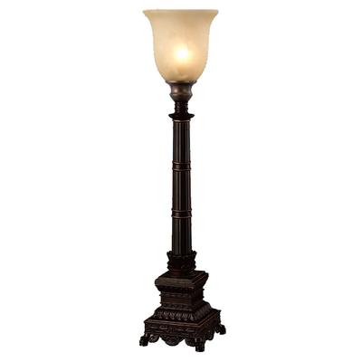 Add character to your home with Home Depot's newest line of portables. This perfectly sculpted table lamp features a century bronze finish paired with an amber alabaster glass shade offering your décor a finishing touch. Century bronz... Read more