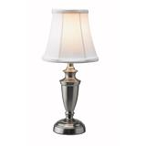 Brushed-nickel finish with white collapsible shade Dimensions: 14" H (36 cm) One 60W medium-base bulb required (not included)