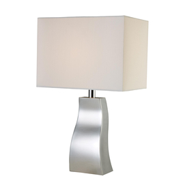 This charming chrome finished table lamp is the perfect choice for adding a little touch of modern style to any décor. rectangular shape pure white fabric shade material chrome finish 100 watt medium base 5.5ft. clear cord 11" shade diamete... Read more