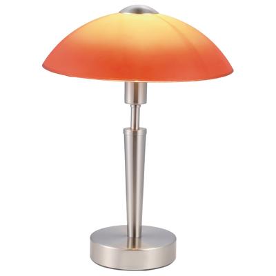 The Eglo Solo 1 table lamp in a matte nickel finish with red & orange glass will suit any contemporary décor setting and is perfect on a night stand, desk or side table. Dimmable by touch, this portable lamp uses a GC 16.5 type bulb, max. 60W (sol... Read more