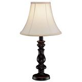 Decorative accent lamp with black painted finish Features flared beige fabric shade Dimensions: 18 h x 10" w (46 h x 25 cm w) Requires one 40W A bulb (52-5584) (not included)