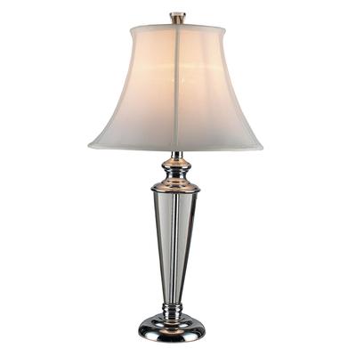 This Vetro table lamp with Chrome plated accents is very practical as it was made with a Tri-Lite design offering different lighting for any room setting. Chrome plated accents Hard back bell shape white TC material shade 28 inch high 1 x 100... Read more