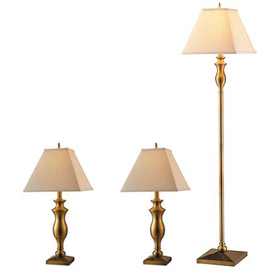 This set of three lamps offers a trio that gleams with a traditional brand of style in antique brass. This set will look prefect in spaces with a rich, antique, or subdued motifs. Set consists of one 58'' H. floor lamp and two 26 ½'' tabl... Read more