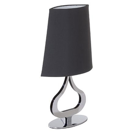 Table Lamp 1 x 40W Type ''B'' Required Chrome plated finish Shade (7.25 x 3) X (10.5 x 5.5) X 10.5'' Available with Black/Red or White silk like material shades 10.5 x 5.5 x 19.75''