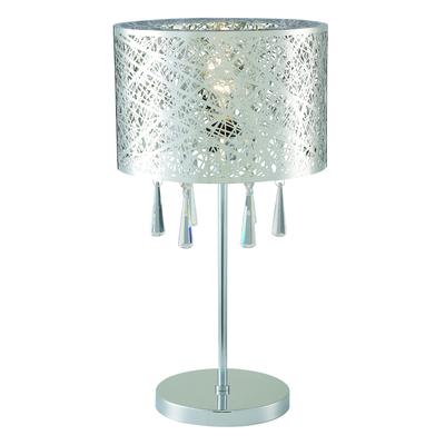 This KYLA table lamp features a sleek chrome finish accented with crystal jewels. The stainless steel shade is both stylish and eye catching. Chrome finish 11.75" W x 22" H Requires 1 x 150W Type A bulb (sold separately).
