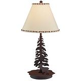 19" (48 cm) accent lamp is ideal for use at a cottage Tannery bronze finish with metal moose accents Hardback shade with moose landscape motif 60W incandescent (52-5473) or CFL (52-5196) bulb required (not included) Matches Kawartha Moose Floo... Read more