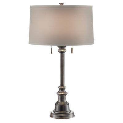 This Timeless and classic table lamp will add style and sophistication to any room. The Antique Nickel finish and neutral Linen Shade blend easily with any décor. Standing 29" high makes this table lamp ideal for bedside or any livin... Read more