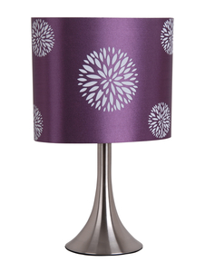 Brushed Steel Finish Assembled height: 13.25" Push On/Off switch Use type A E26 bulb, 40 watt max. or Use CFL bulb E26 equivalent, 11 watt max. (Not included)