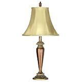 Champagne fabric bell shade Resin lamp with painted aged-gold finish 27" (69 cm) high Replacement bulbs: 52-5493 (incandescent) and 52-5140 (CFL)