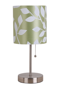 Brushed Steel Finish Assembled height: 14.25" Pull chain on/off switch Use type A E26 bulb, 60 watt max. or Use CFL bulb E26 equivalent, 13 watt max. (Not included)