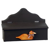 Mailbox. 16 1/2 in. x 10 1/2 in. x 5 in. Stained and water resistant varnished base. Cottage country look with hand sculpted wooden duck and matching ribbon. Made of pine wood. Mocha colour.