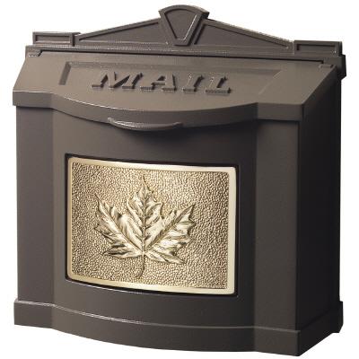 Gaines Manufacturing Metallic Bronze Wallmount Mailbox – Polished Brass Leaf Accent view