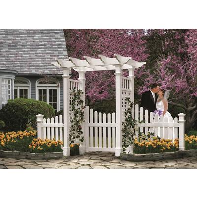 The Fairfield Arbor with gate and wings provides the perfect structure for any yard, garden or pathway. This flat top pergola style design is very stylish, while still offering timeless appeal. Made with premium weather-resistant vinyl, this arbo... Read more